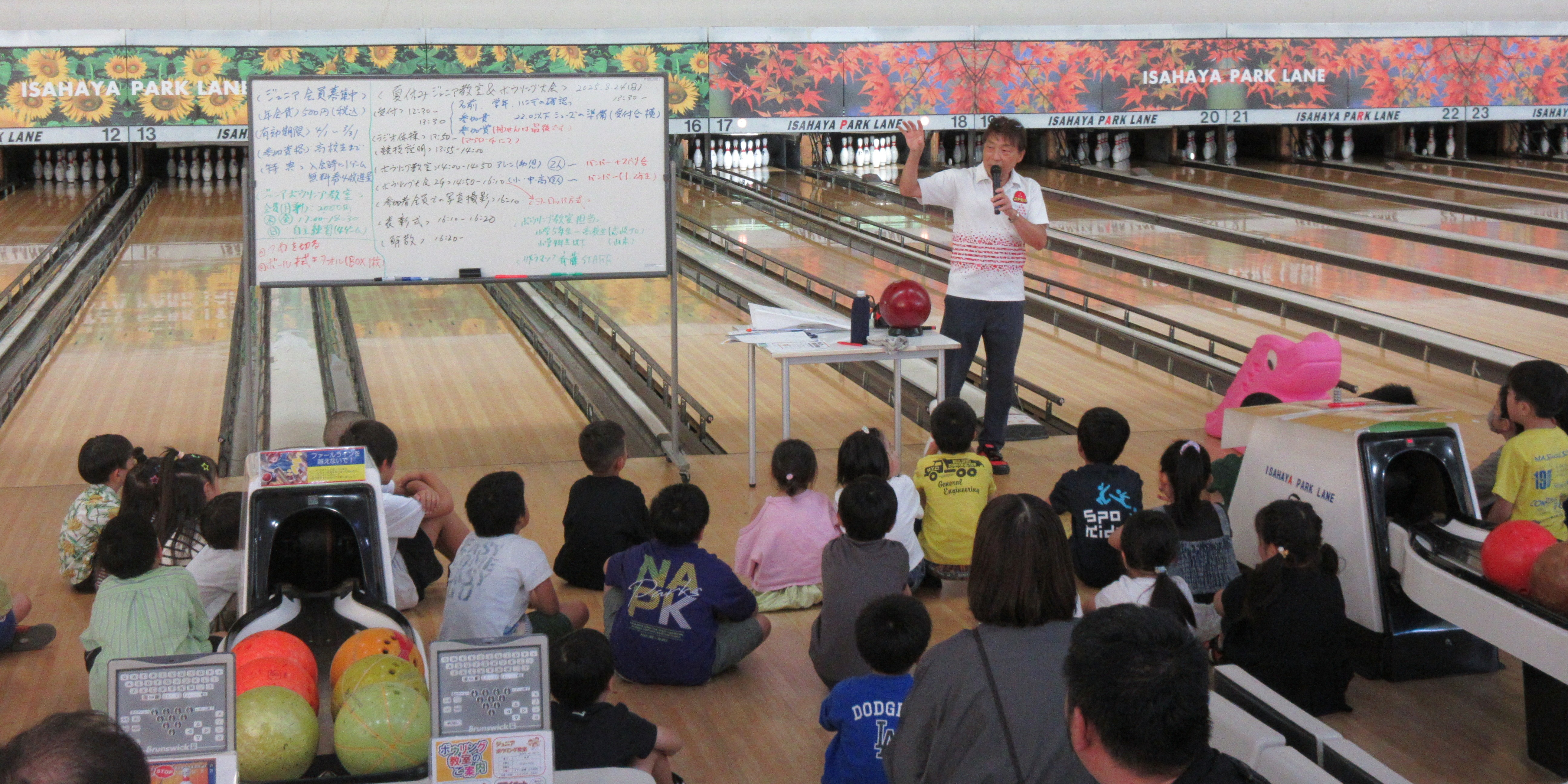 8月24日、夏休みの特別企画として「ジュニアボウリング教室」を開催しました。今回初めての開催でしたが、当日は3歳~17歳の55名の方が参加、参加者からは「楽しかった」等の声が多く聞かれ、ボウリングの魅力に触れる1日となりました。 またパークレーンに遊びに来てくださいね!